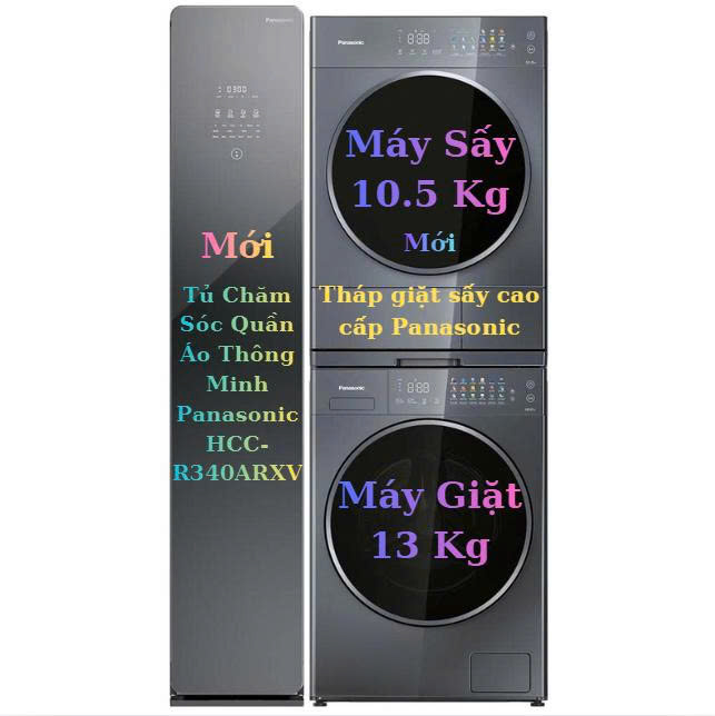 Bộ sản phẩm Panasonic Tủ chăm sóc quần áo, Máy giặt 13Kg, Máy sấy 10.5Kg