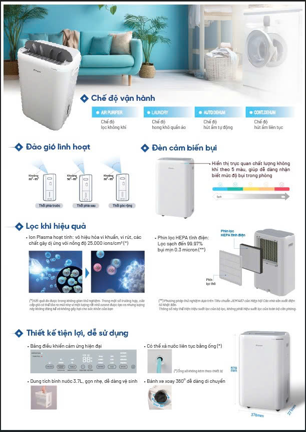 Chức năng: Hút ẩm, Lọc không khí, Sấy quần áo