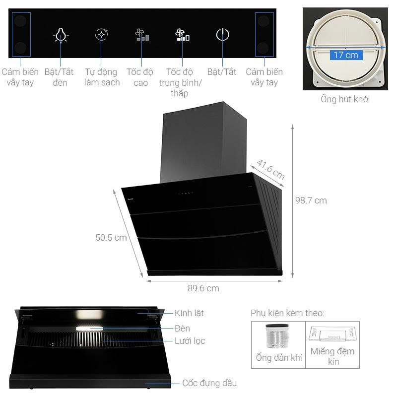 Công suất hút mạnh mẽ lên đến 1550 m³/h cho hiệu quả loại bỏ mùi nhanh chóng.