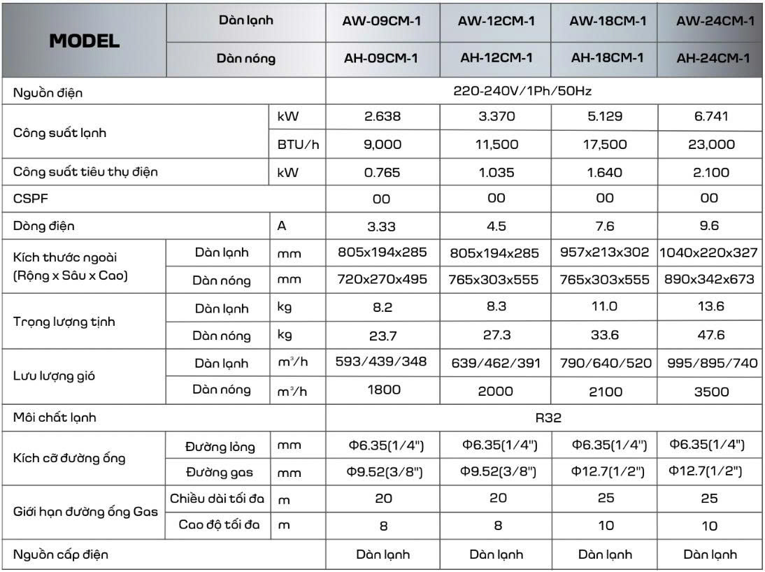 Model sản phẩm: AW-09CM-1/AH-09CM-1
