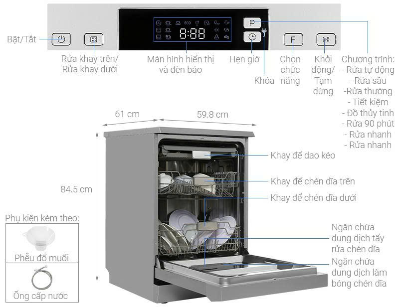 Máy rửa chén độc lập thiết kế hiện đại, phù hợp với nhiều không gian.