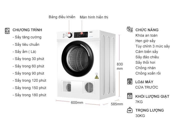 Máy sấy có khối lượng sấy 7 kg thích hợp cho gia đình 2 -3 người